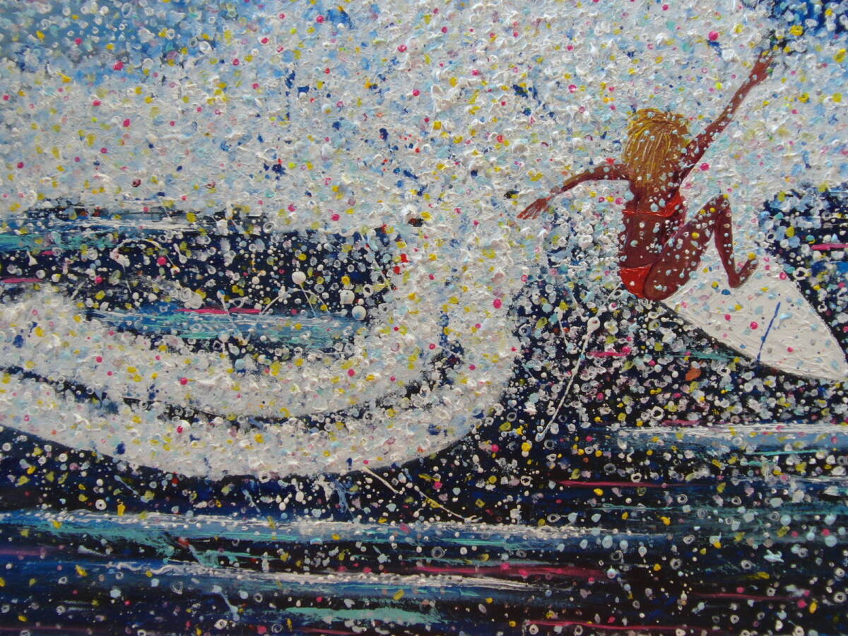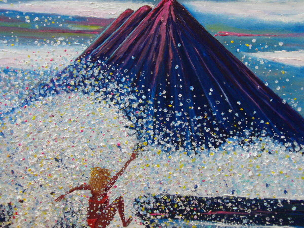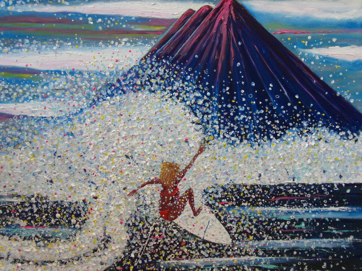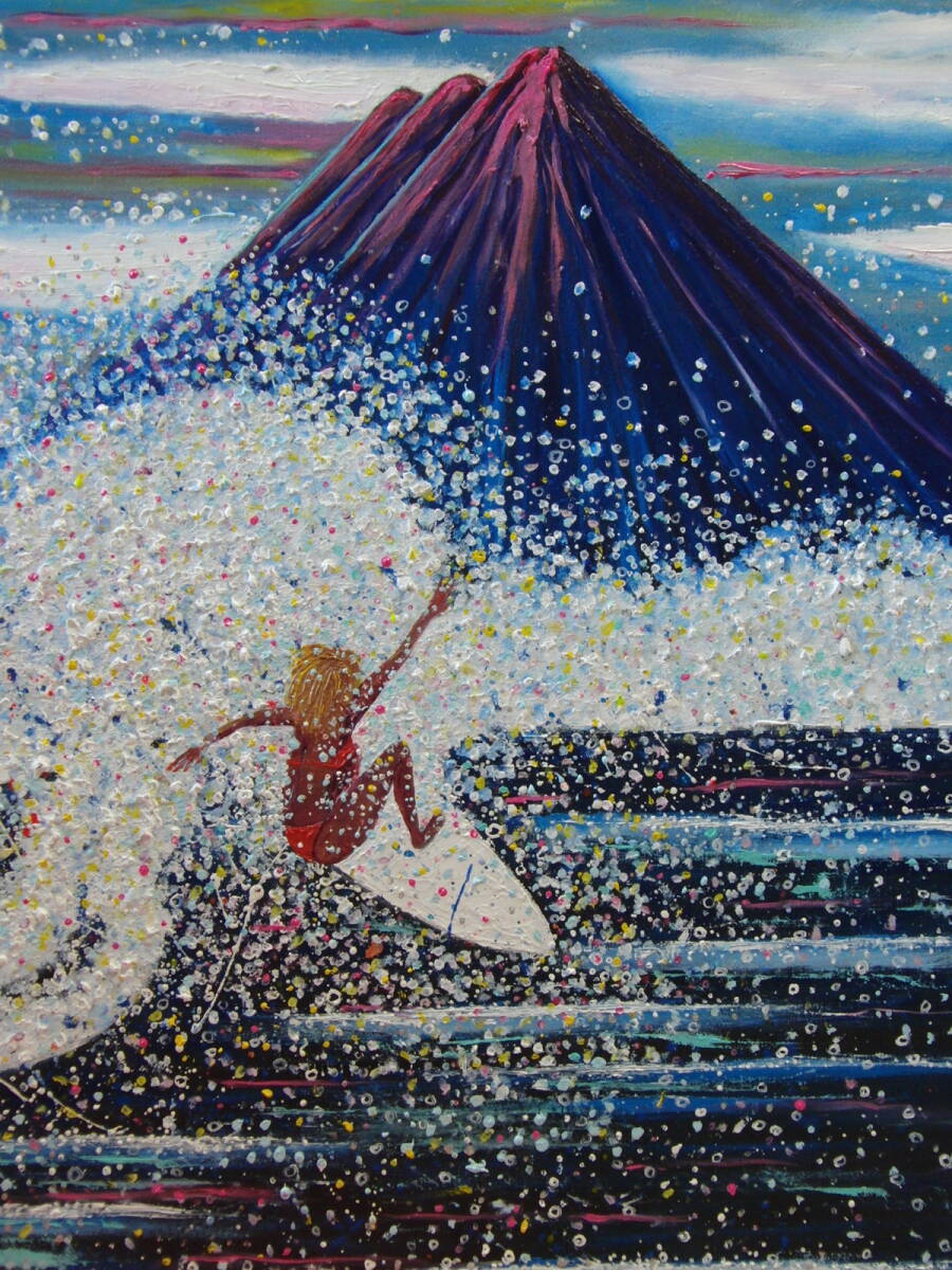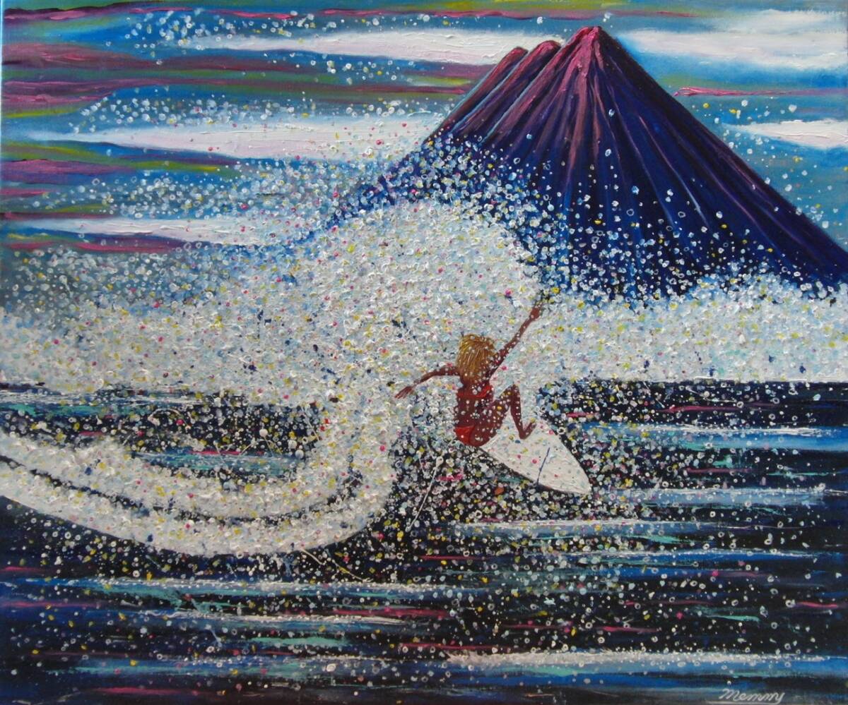 ≪国美協≫、佐藤めみ、『サーファーと富士山』、油彩画、F20号:72,7×60,6cm、油絵一点物、新品高級油彩額付、直筆サイン・真作保証付