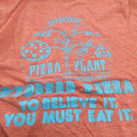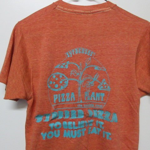 80s USA製 Tシャツ S 茶系 ピザ ビンテージ オールド アメカジ古着 sy3989