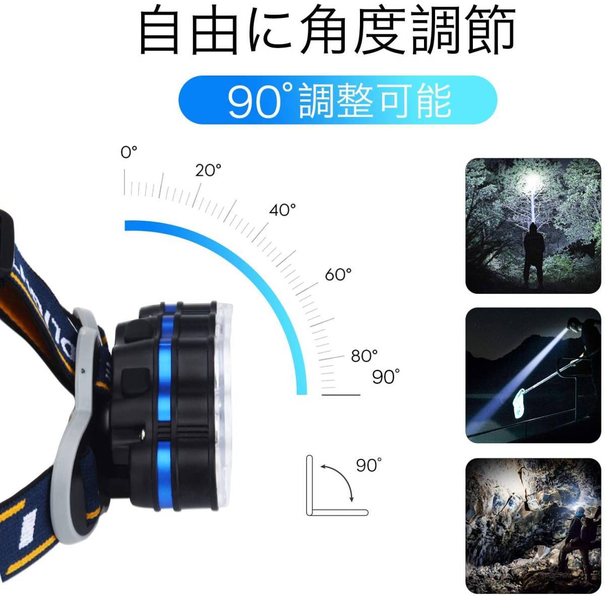 防水 LEDヘッドライト 8点灯モード USB充電式 軽量 18000ルーメン