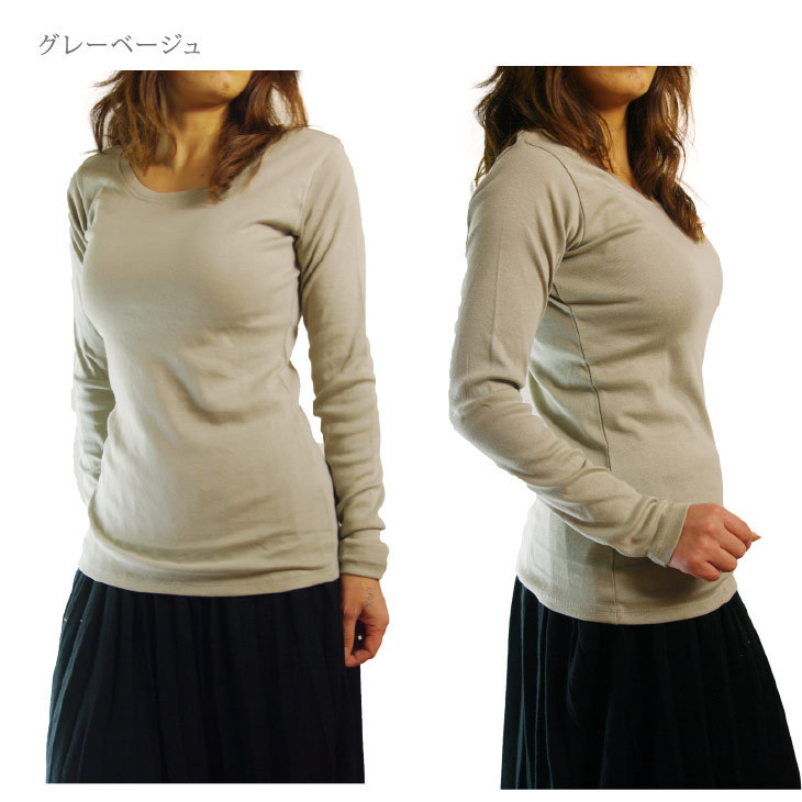 LL グレーベージュ 長袖Tシャツ ロンT カットソー レディース コットン 綿 定番 無地 ベーシック 新品