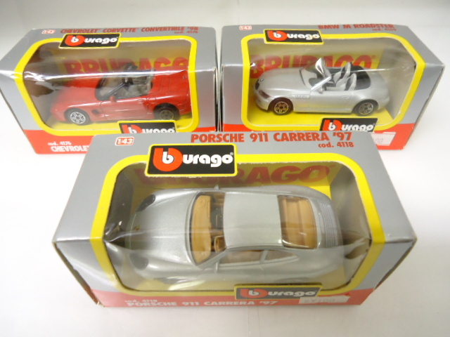 ブラーゴ burago 1/43 BMW ★ PORSCHE 911 CARRERA ★ CHEVROLET CORVETTE セット