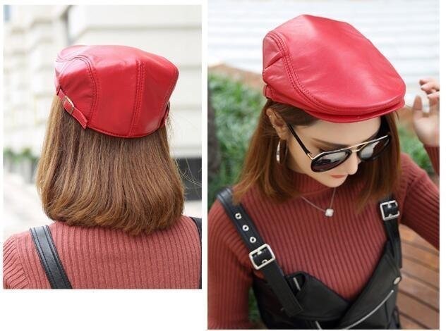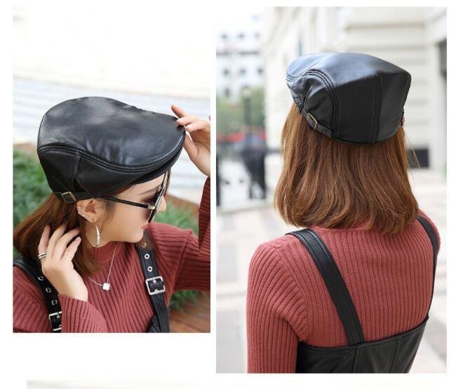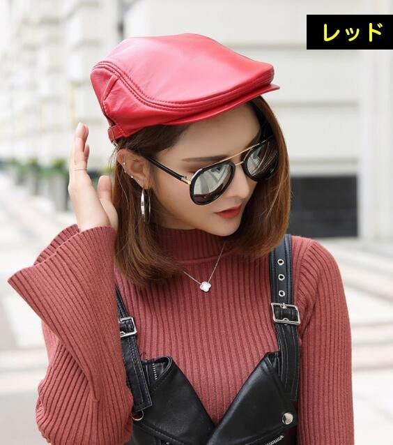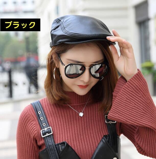 ベレー帽 羊革 本革 帽子 ハンチング レディース メンズ レザー 防寒 プレゼント 保温防寒 春秋冬 男女兼用 フリーサイズ☆ブラック
