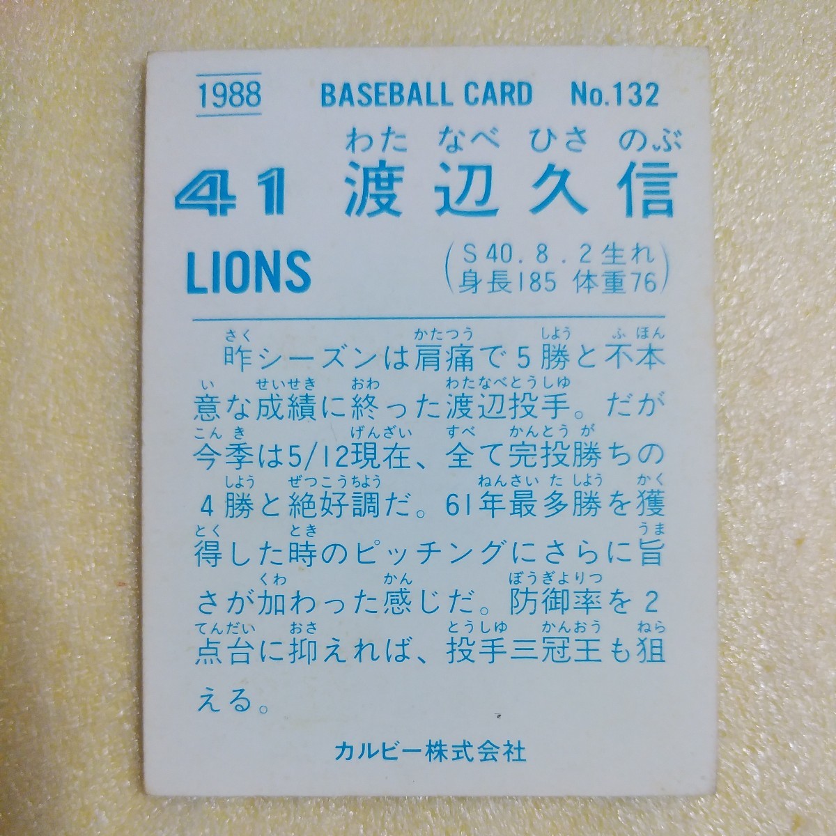 1988カルビー野球カード№132渡辺久信(西武)