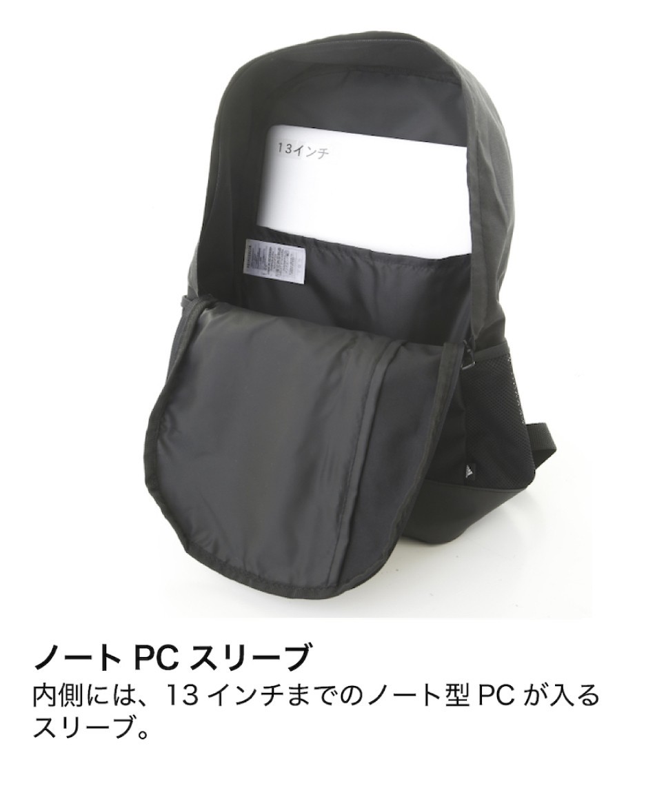 内側の仕切りでノートPCと他の物を分けて収納できる設計。