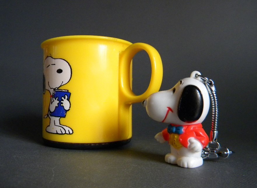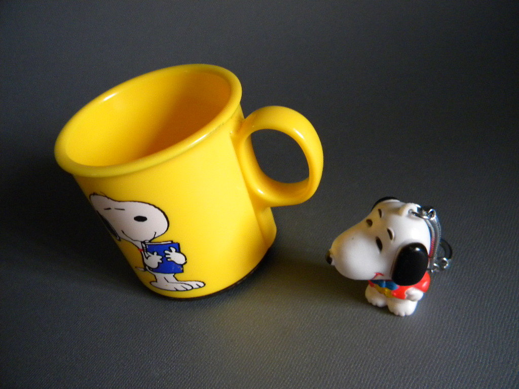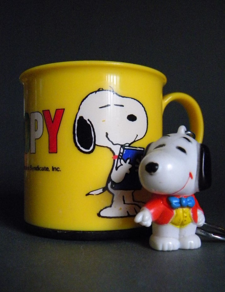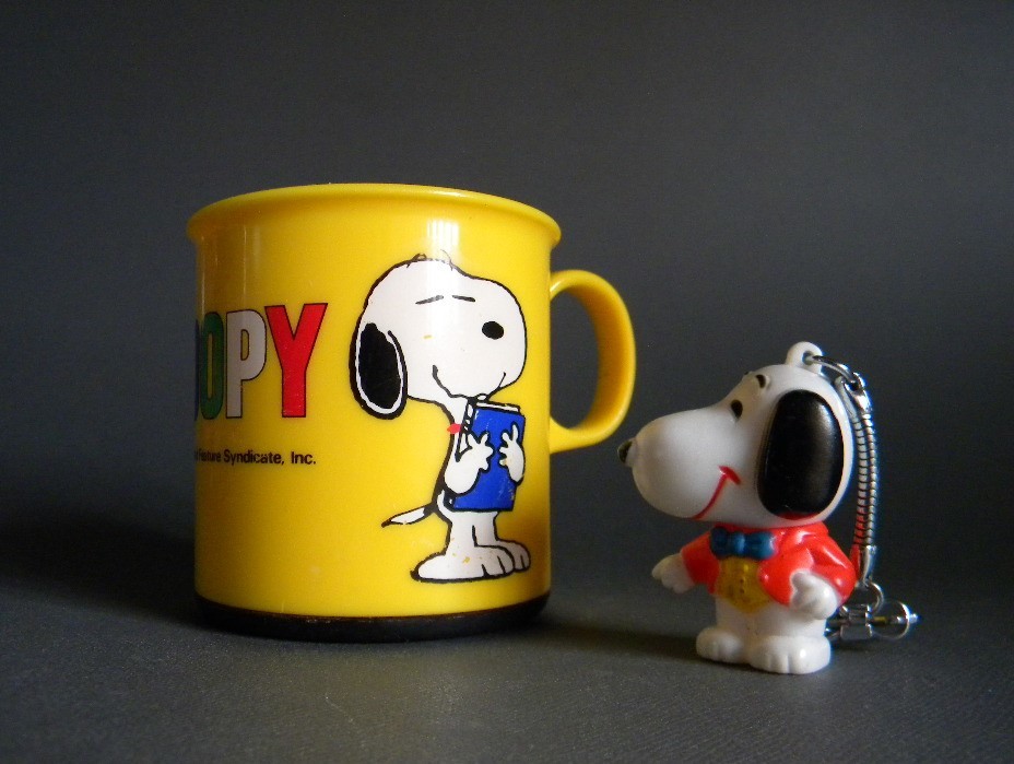 当時物  ★★Vintage Snoopy 70`s 日本製 カップ&ソフビ キーホルダー !! 仔犬 sofvi スヌーピー 動物 イヌ ペット★★「定形外/LP可」