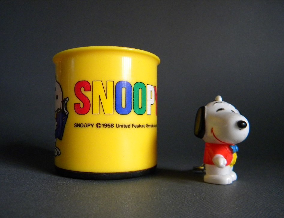 当時物 ★★Vintage Snoopy 70`s 日本製 カップ&ソフビ キーホルダー !! 仔犬 sofvi スヌーピー 動物 イヌ おまけ ペット「定形外/LP可」