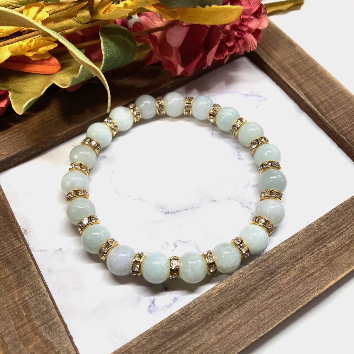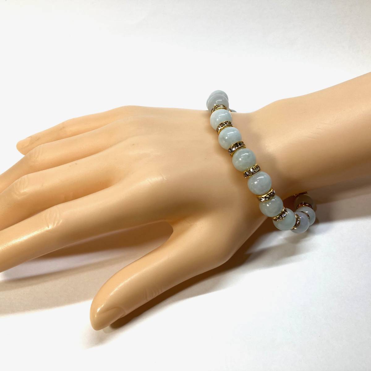 こちらは、10mm玉のビルマ翡翠を使用したパワーストーンブレスレットです。間にはロンデルを挟み高級感あるブレスレットに仕上げています。石大きさは腕にも馴染みやすいように10mm玉を使用して、サイズは内径約18cmです。(サイズ調節も無料で承っています。サイズ変更の場合は落札後、取引ナビにてご一報くださいませ。) 数に限りがございますので気になる方はお早めにどうぞ。