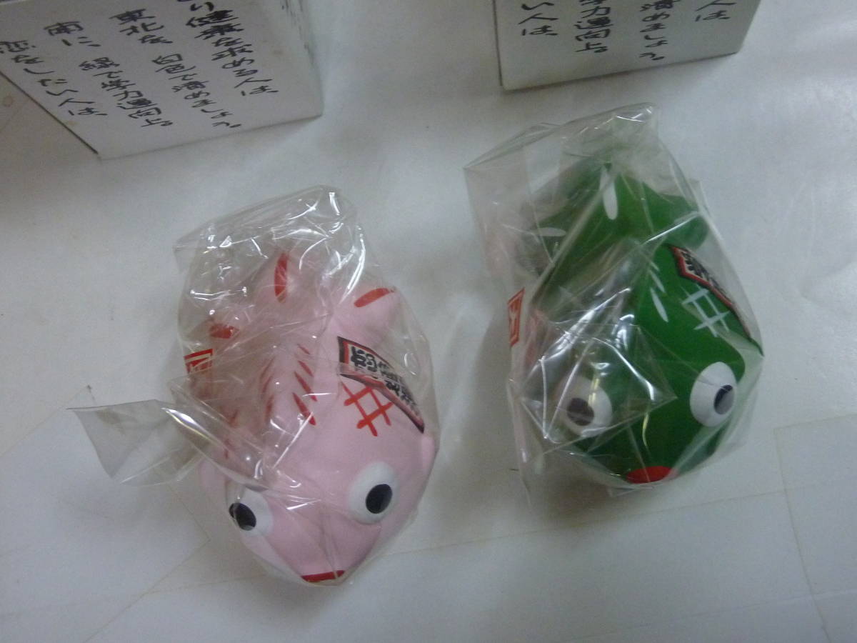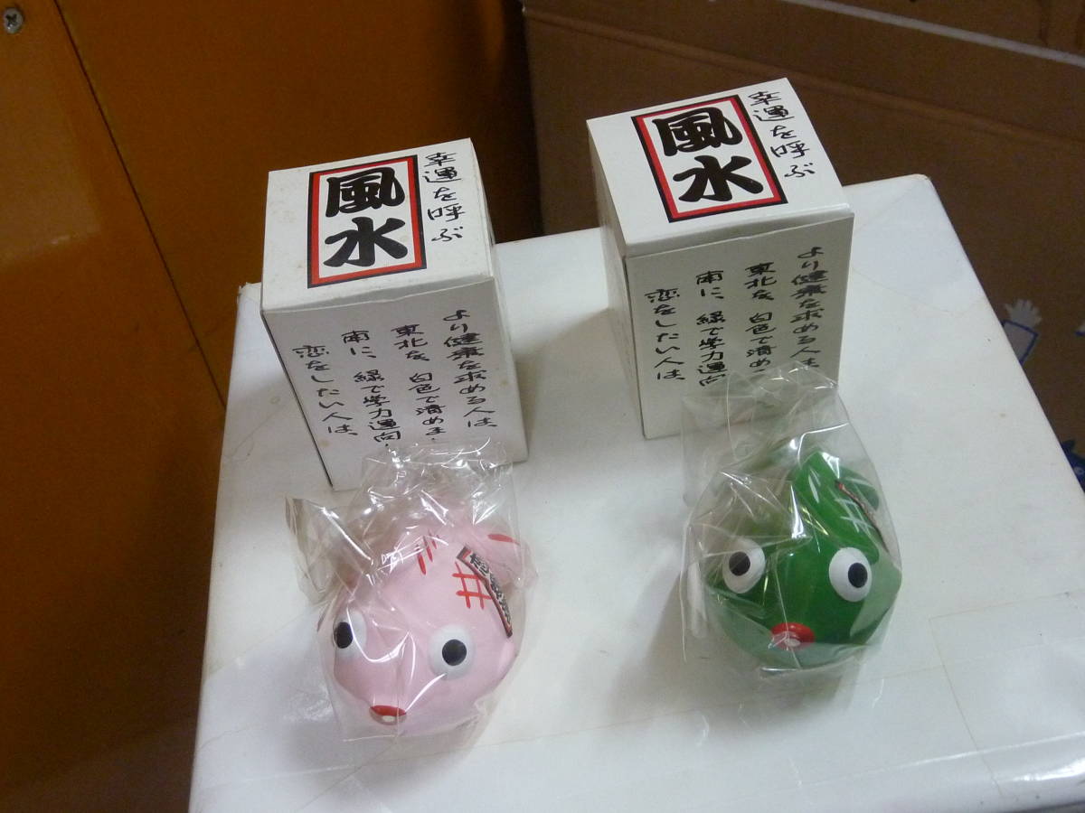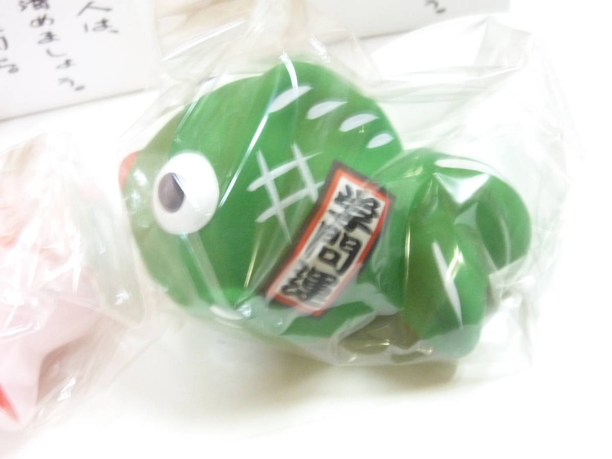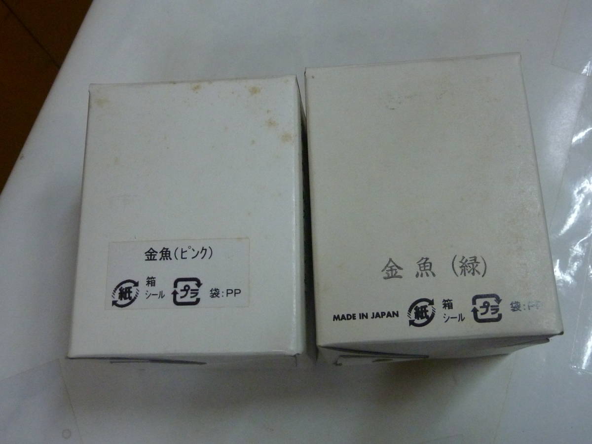 未使用[ 幸運を呼ぶ 風水 金魚 ]かわいい陶器置物 ピンク+緑 2個セット 本体約7㎝ 送料無料