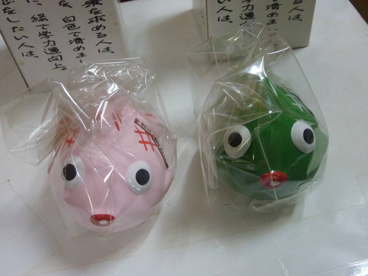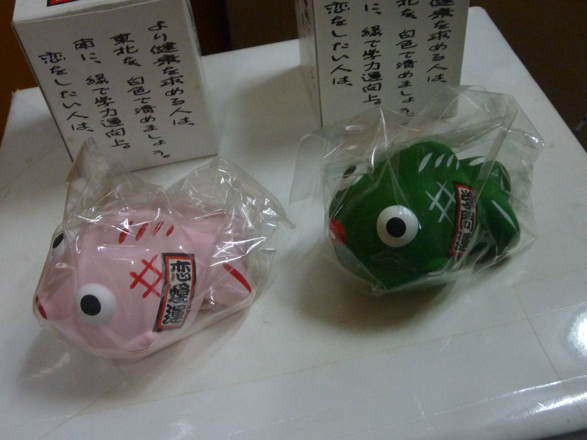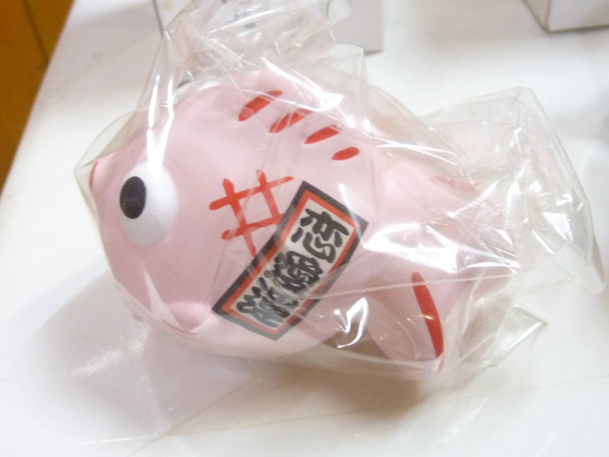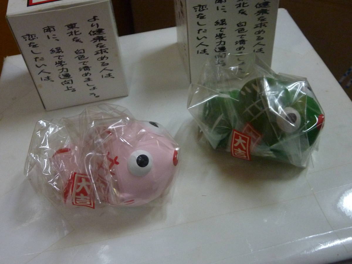未使用[ 幸運を呼ぶ 風水 金魚 ]かわいい陶器置物 ピンク+緑 2個セット 本体約7㎝ 送料無料