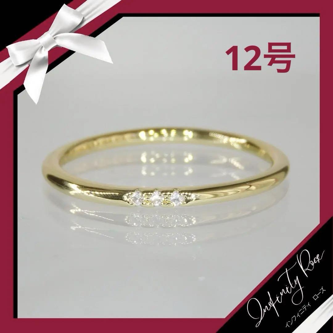 (R010G)12号 18KGPゴールドのシンプル3粒細リング大人の指輪 リング