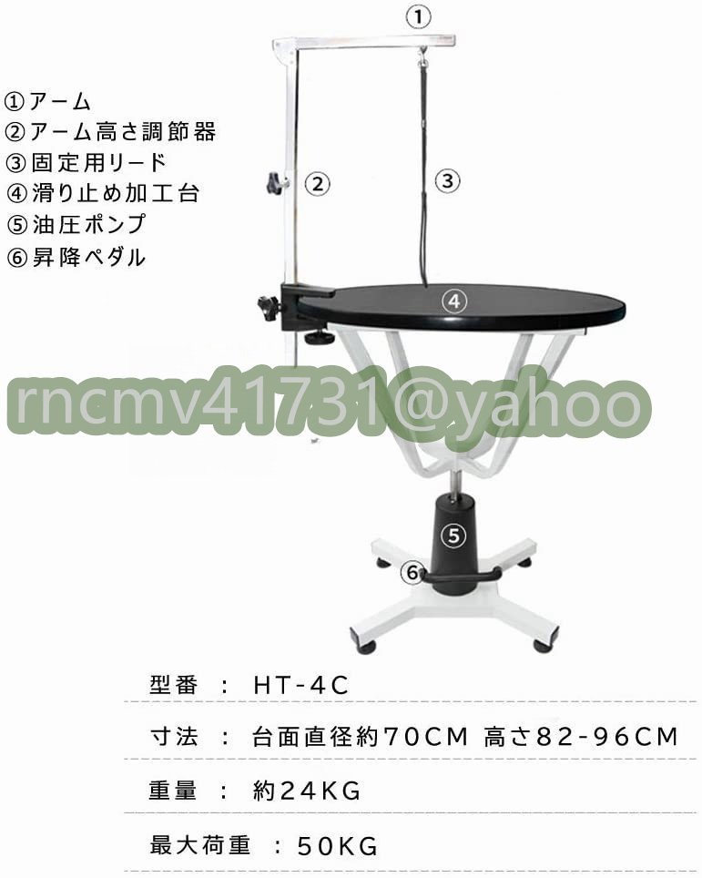 「81SHOP」品質保証☆小型犬から中型犬まで対応 油圧式 昇降機能付き トリミングテーブル アーム付属 台面直径 70cm