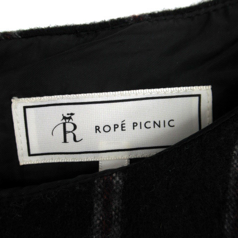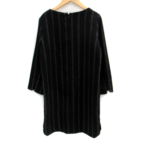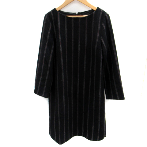 ロペピクニック ROPE Picnic ワンピース ひざ丈 長袖 ラウンドネック ストライプ柄 ウール混 38 黒 ブラック ワインレッド レディース