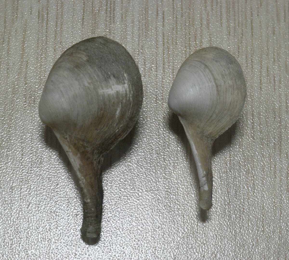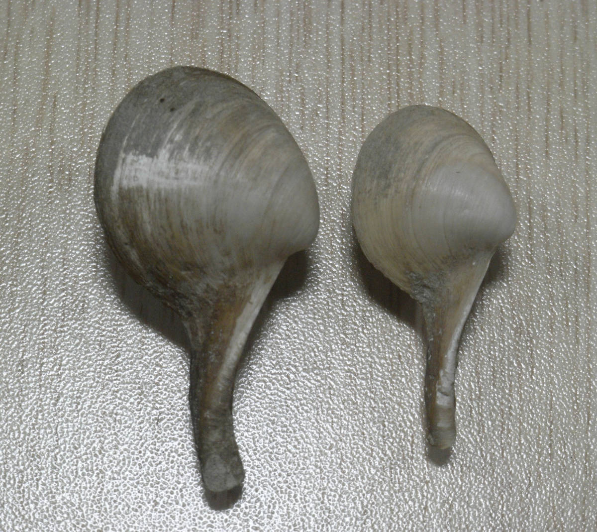 貝の標本 Cuspidaria kawamurai 45mm&36mm.2pcs .deep water.. 台湾