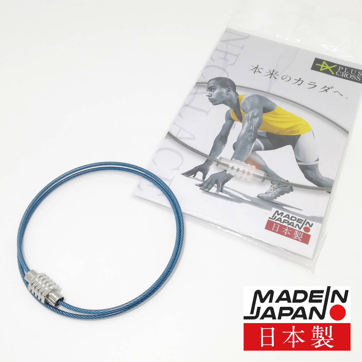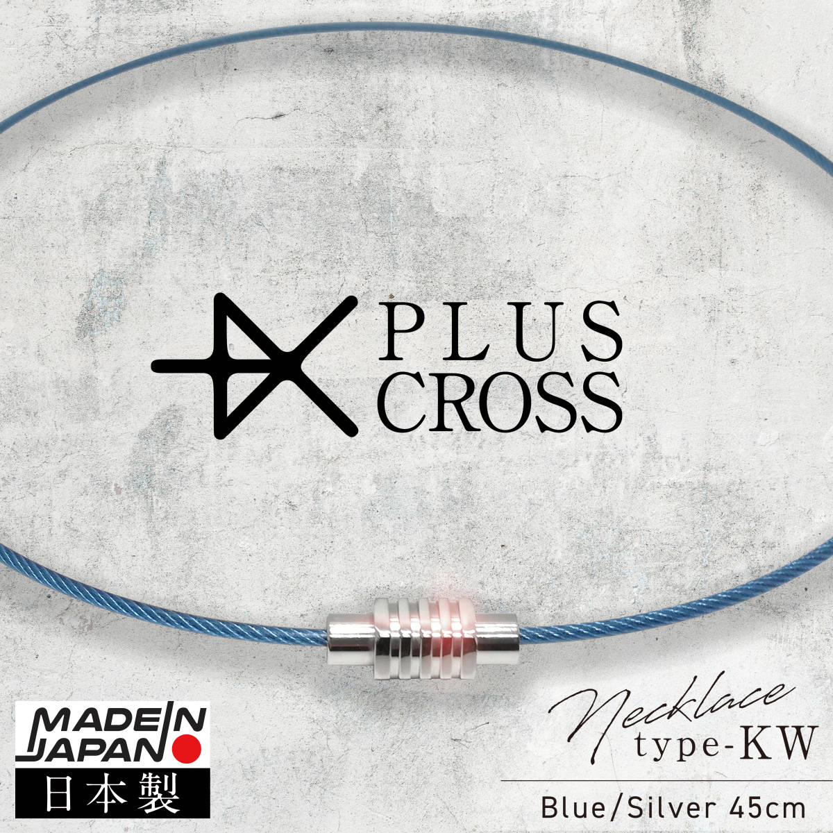 スポーツネックレス PLUSCROSS KW BL/SV 45cm 【新品 日本製】 野球 ゴルフ テニス マラソン 電磁波対策 電磁波カット 健康 ストレス