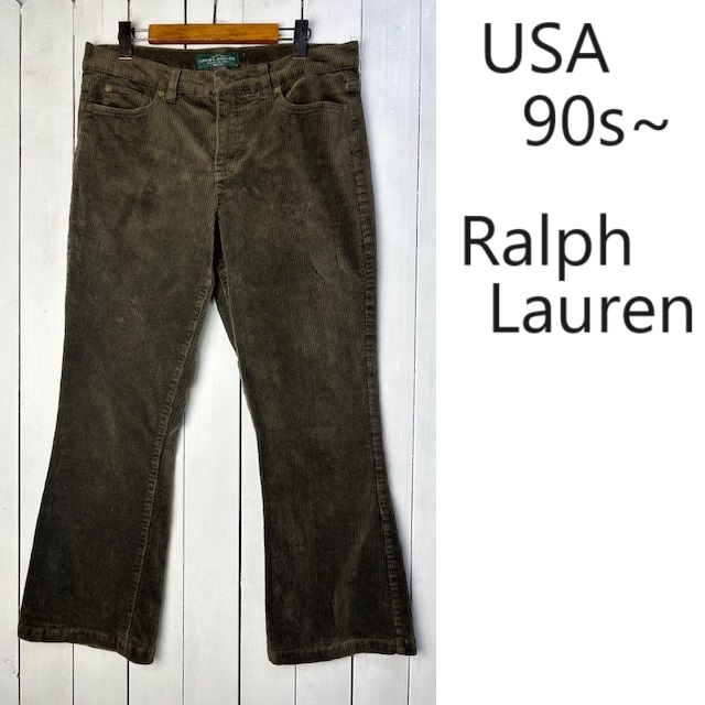 USA古着 90s~ Ralph Lauren フレアコーデュロイパンツ 10 焦げ茶 オールド ラルフローレン ヴィンテージ アメリカ古着 ブーツカット ●38