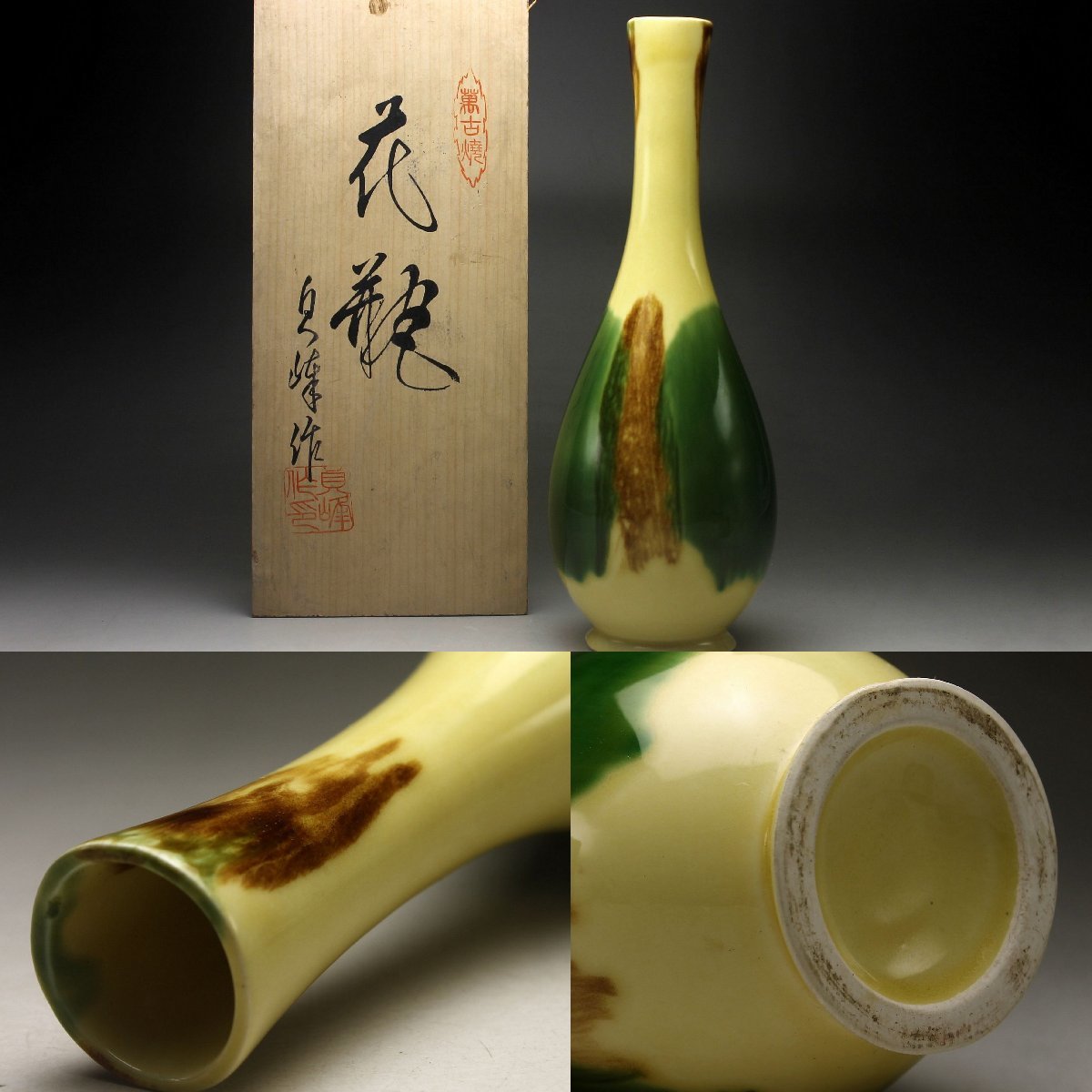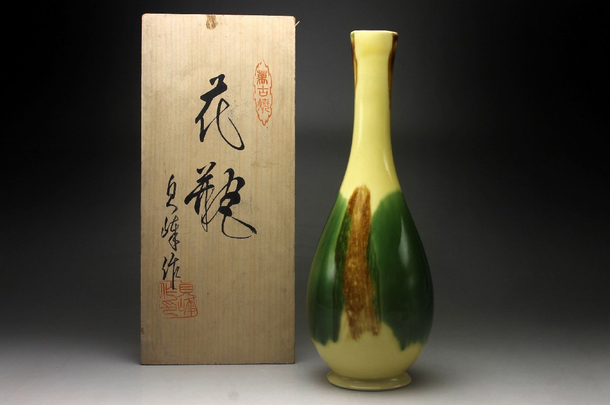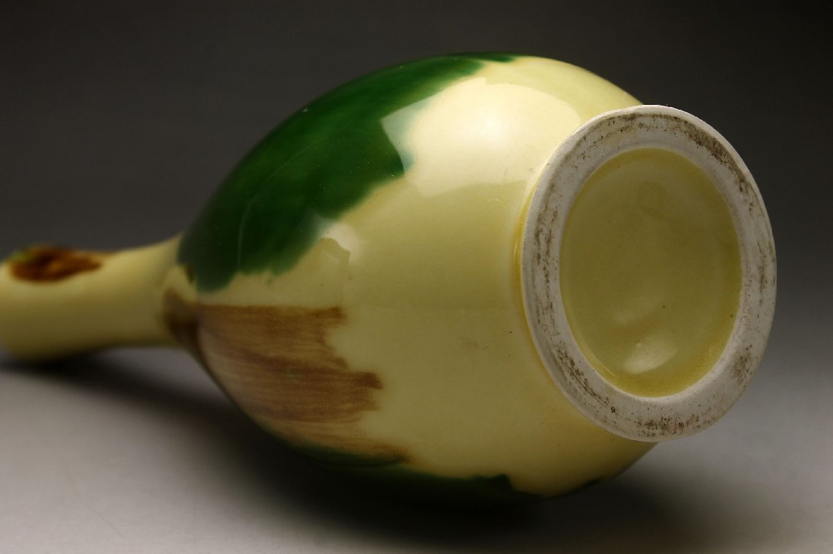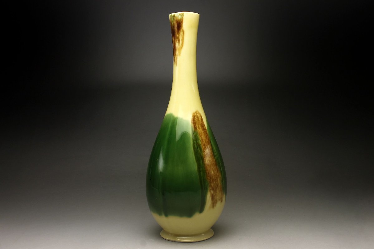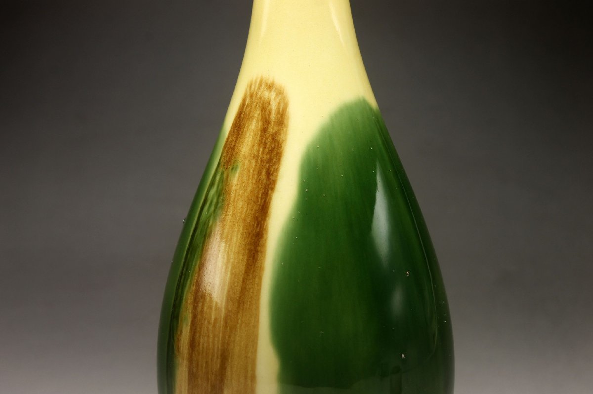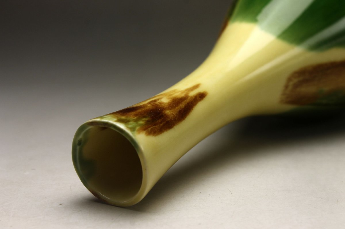 【余韻】 有田焼 三彩釉 鶴首花瓶★一輪挿 華道具 無傷美品<同梱可>