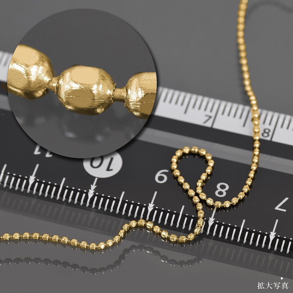 ボールが連なったボールチェーンのボール1つ1つにカット(平らな面)を入れたブレスレット。サッカーボールのようにカットされており、カット面がキラキラ輝き綺麗です。 ※こちらのチェーンは絡まりにくく万が一絡まってしまったとしても解きやすいデザインです。 ※イオンプレーティング(IPメッキ)とは、金属イオンと不活性ガスを反応させた化合物を製品に蒸着させるコーティングで、ガスの比率でカラーを調整します。従来の鍍金加工に比べて表面耐久性、密着性、工程の安全性が飛躍的に向上しております。 |