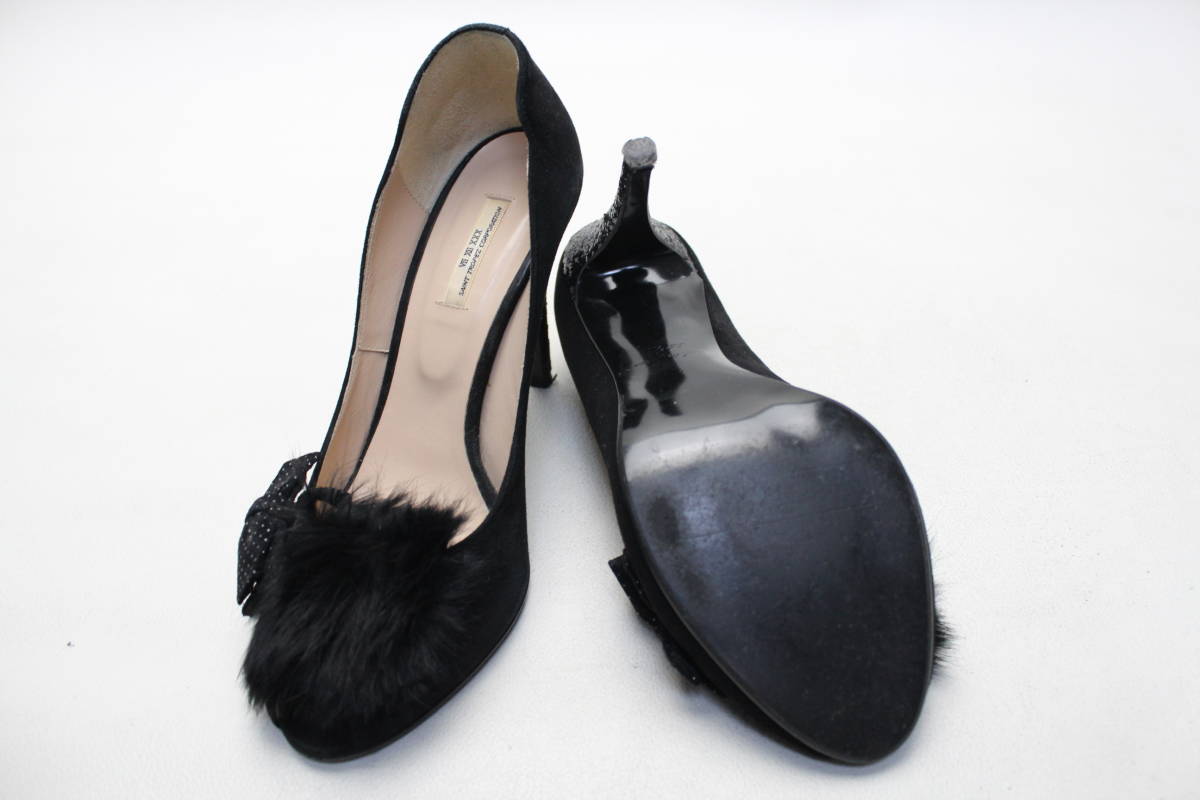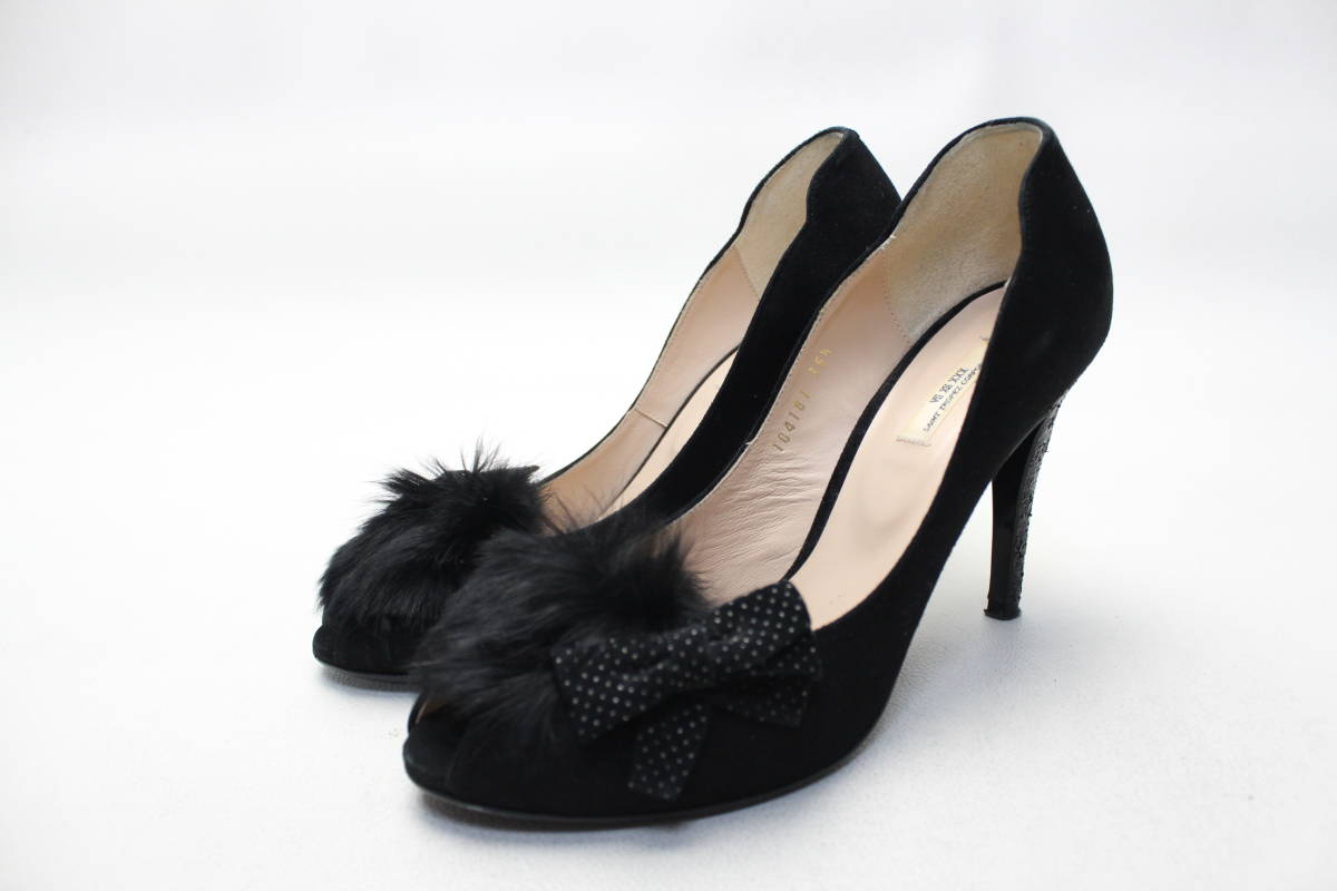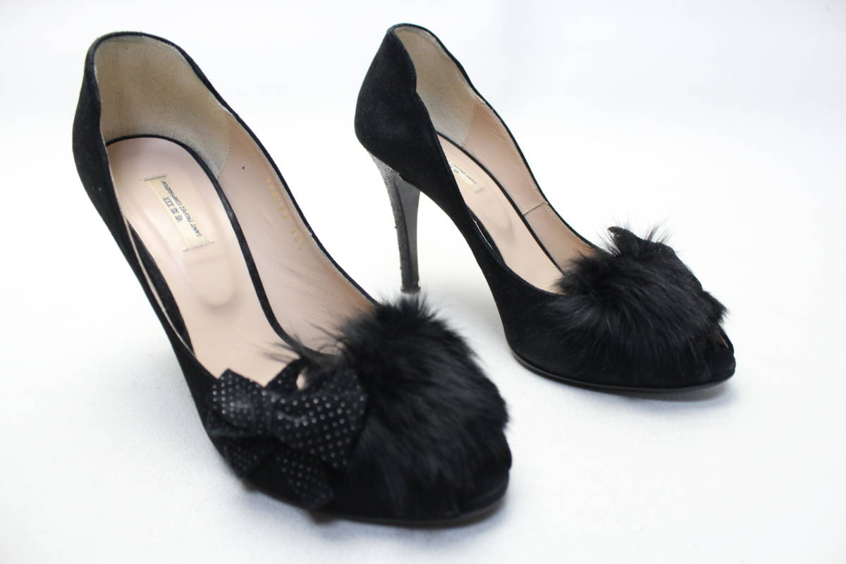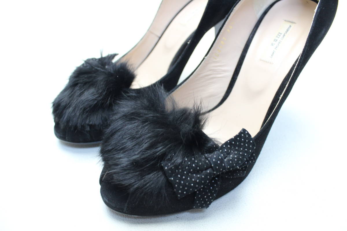 甲にボリュームのあるラビットファーをあしらった、「セブン・トゥエルブ・サーティ」のパンプス。
