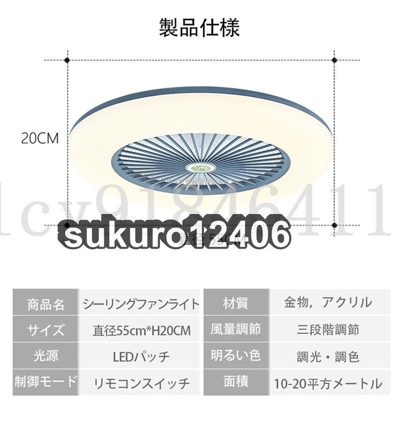 ■素材:アクリル、ABS ■本体サイズ: 直径45cm 高さ21cm ワット数:55W ■光源: LEDチップ ■定格電圧:100V-110V ■光色: 無極調光(リモコンがある,カラーと明るさの調整) 【使い方】扇風機と照明は独立した機能で、生活に合わせて、同時に使ったり、分割して使ったりできます。取り付けが簡単で、掃除が簡単です。 【多機能】ファンシーリングライトは、ホワイトライト、ニュートラルライト、ウォームライトをリモートで切り替えることができ、生活のあらゆるニーズに対応します。 【生産地】中国(原産地は中国ですので、説明書は中国語になりますが、使用には影響がございません) 【取付説明】該当製品はお客様側から取り付けることが必要があります。ご購入後、取り付けの問題による返品はお受けできません。あらかじめご了承のほどよろしくお願いいたします。 【取付方法】電源直結タイプです、裏側に電線の結線がございます。照明器具は天井でネジを固定する必要です。取付は電線接続が必要なので、専門の資格を持つ工事店、電気店に依頼してください。