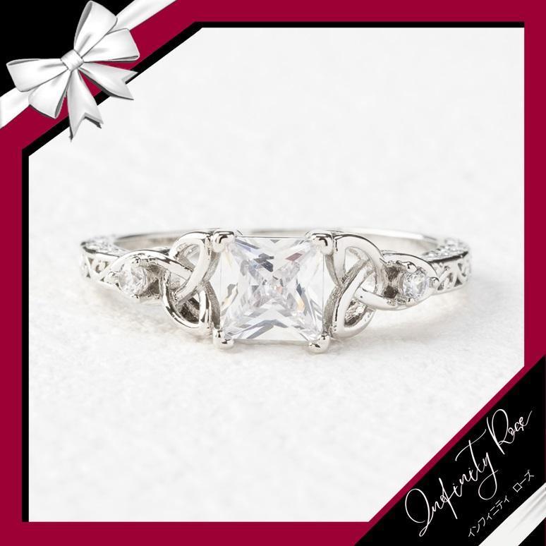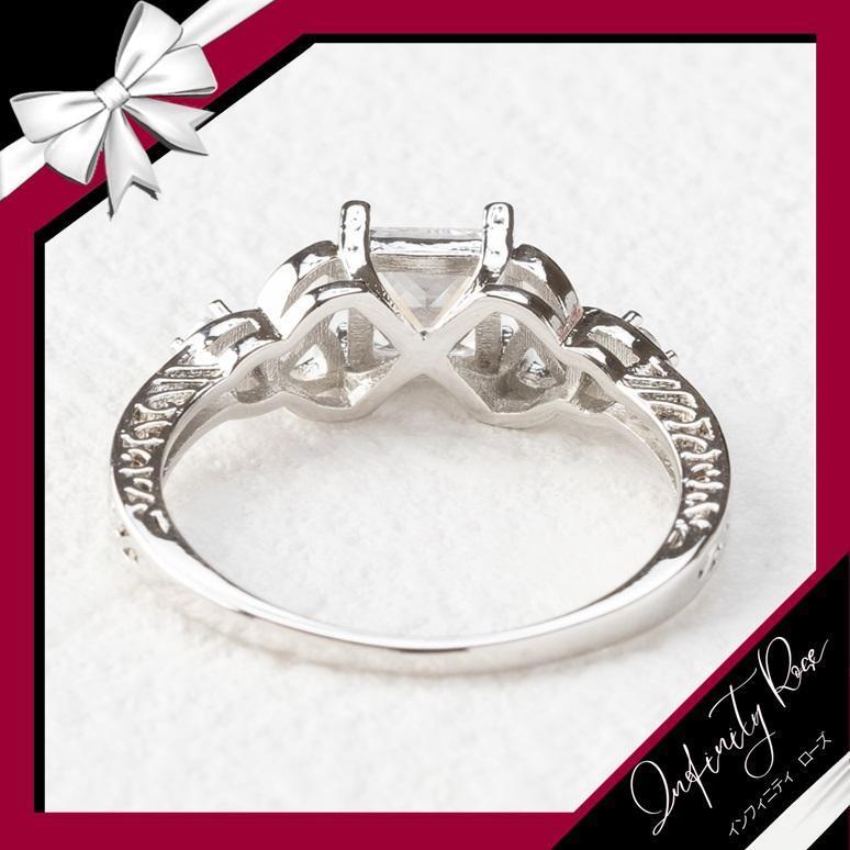 (R030S)17号 女性の繊細デザイン真ん中四角クリスタルリング 爪留め仕様