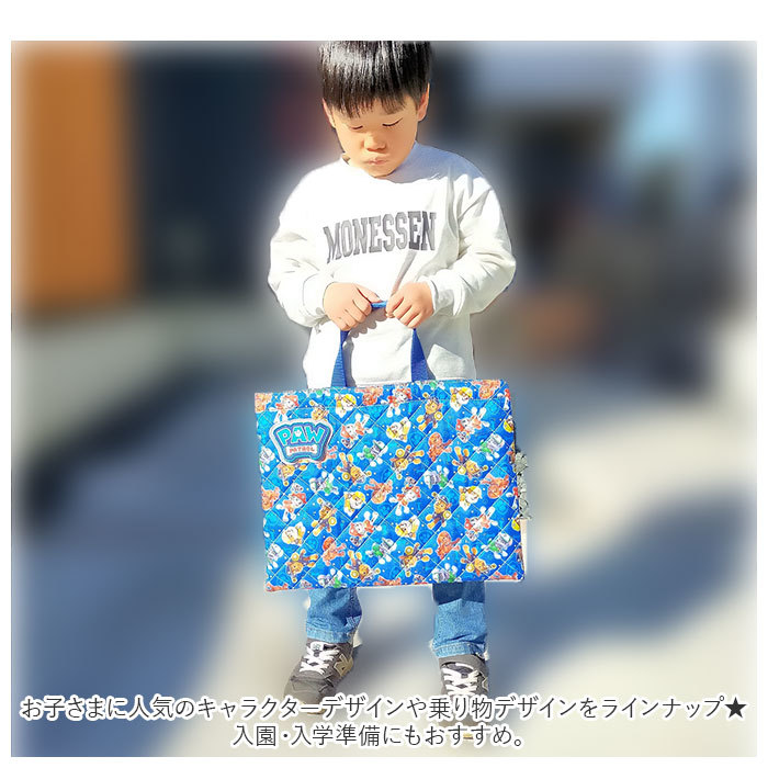 | 商品説明 | ・・習い事や通学のサブバッグとして活躍!キルトレッスンバッグが登場。(対象年齢3歳以上) ・内側にお名前を記入できる!めくれる仕様のワッペンがアクセント♪ ・バッグには全面プリント柄のキルト生地を使用。ふんわり柔らかく、とっても軽量◎ ・内側はB4サイズ対応で、大きめの楽譜などもすっぽり♪小物収納に便利な吊りポケットとネームタグ付き。(※マチがないため、厚みのある楽譜などは収納できません。) ・長さの異なる2種類の持ち手を装備。短い持ち手(内側)を使って机の横に掛ければ、床につきにくいのも嬉しいポイント。 ・汚れが気になったら手洗いOK。 ・お子さまに人気のキャラクターデザインや乗り物デザインをラインナップ★ ・入園・入学準備にもおすすめ。 |