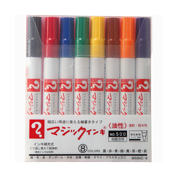 【即決】■マジックインキ■No.500 油性マーカー 細書き用 /8色セット /油性ペン /黒・赤・青・緑・黄色・茶色・橙色・紫 //M500C-8