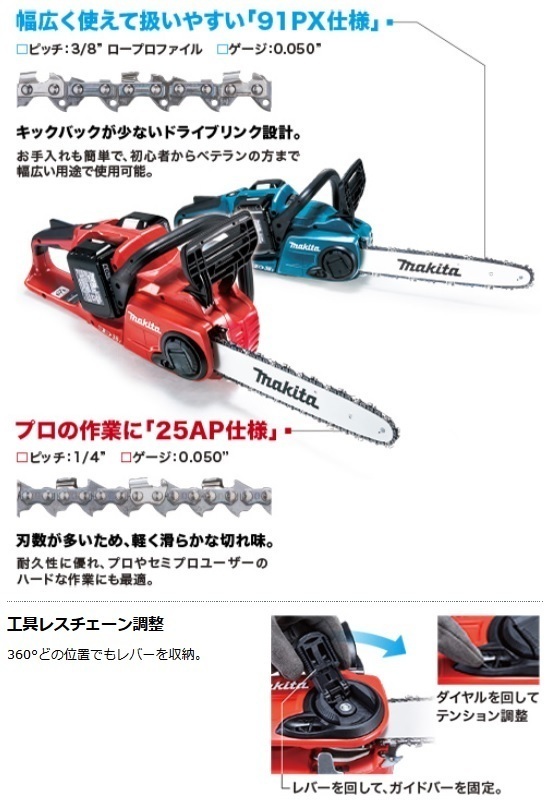 | ガイドバー 長さ(mm) | チェーン形式 | チェーンスピード [m/分] | |