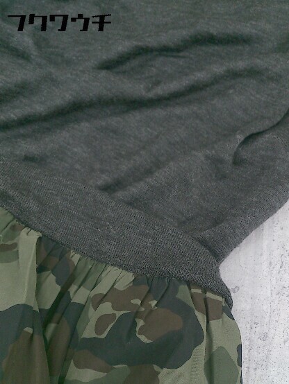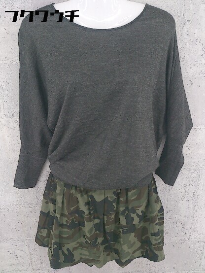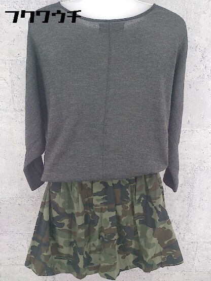 ◇ nano universe ナノユニバース 切替 迷彩 カモフラ 長袖 ミニ 膝丈 ワンピース F チャコールグレー カーキ * 1002799206839