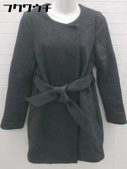 ■ ◎ Ray BEAMS レイ ビームス ウエストリボン付 長袖 ノーカラー コート サイズ0 チャコールグレー レディース