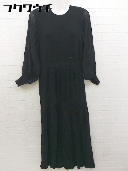 ◇ natural couture ナチュラルクチュール シフォン ニット 切替 長袖 ロング ワンピース サイズF ブラック レディース