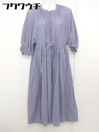 ◇ mystic ミスティック ウエストリボン フリル 長袖 膝下丈 ワンピース サイズF パープル系 レディース