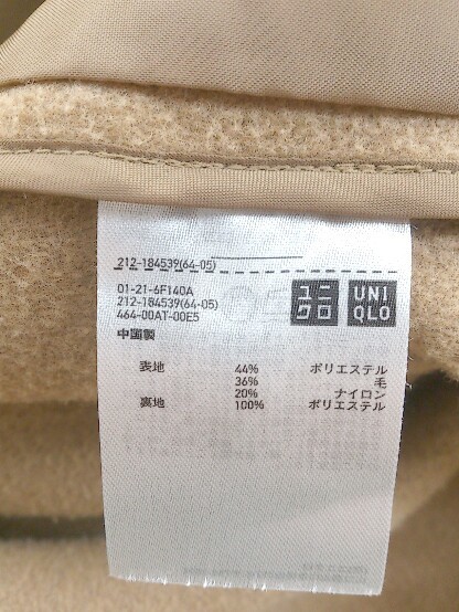 ◇ UNIQLO ユニクロ 長袖 チェスター コート サイズL キャメル ブラウン系 レディース