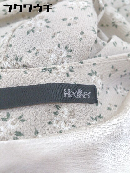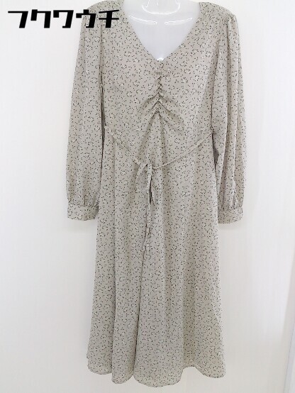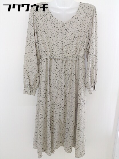 ◇ ◎ Heather ヘザー ウエストリボン 花柄 長袖 膝丈 フレア ワンピース サイズ F ベージュ マルチ レディース