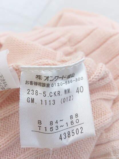 ◇ 自由区 ジユウク ジップアップ 長袖 ニットジャケット サイズ40 ピンク レディース