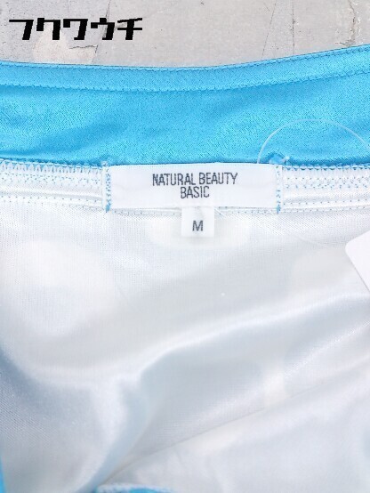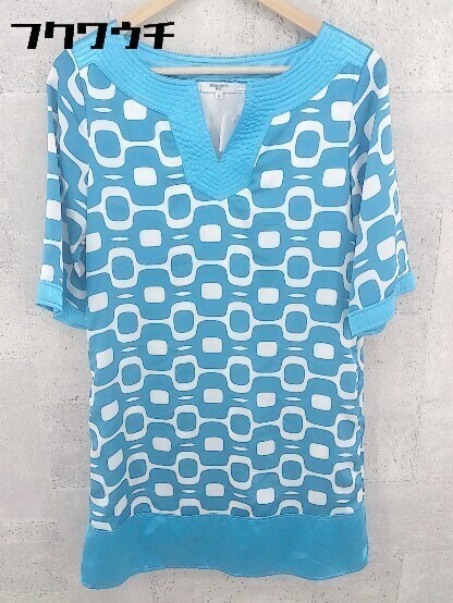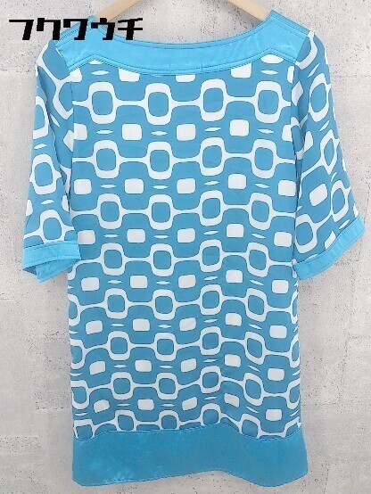 ◇ NATURAL BEAUTY BASIC 総柄 七分袖 膝丈 ワンピース サイズM ブルーホワイト レディース