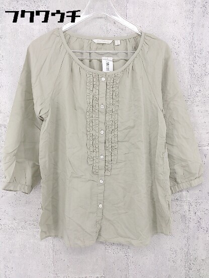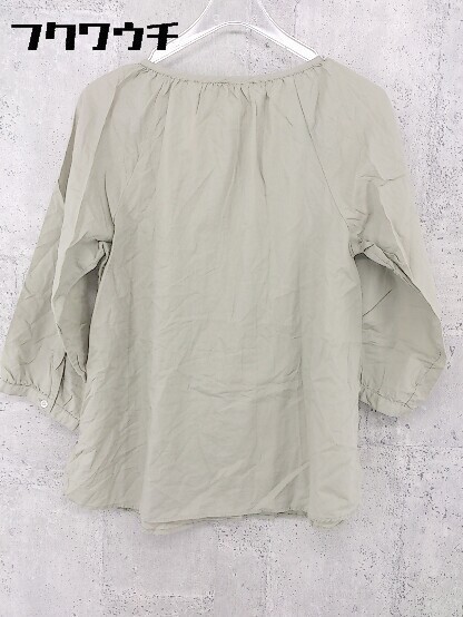◇ UNIQLO ユニクロ shirt collection 八分袖 ノーカラーシャツ サイズM カーキ レディース