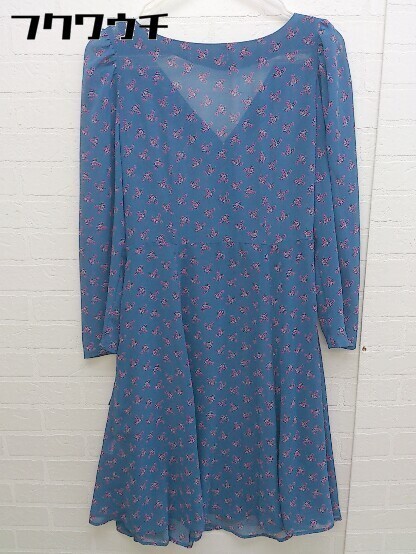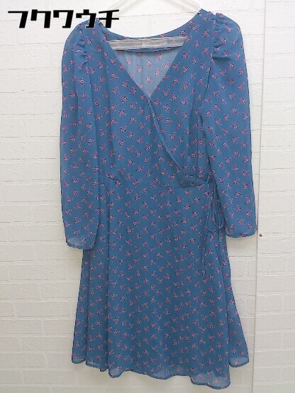 ◇ ◎ one after another NICE CLAUP 花柄 ラップ巻き 長袖 膝丈 ワンピース サイズF ネイビー パープル レディース
