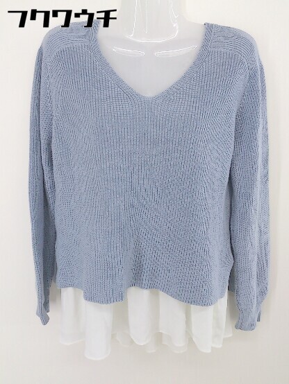 ◇ ◎ KBF+ ケービーエフプラス URBAN RESEARCH Vネック レイヤード 長袖 ニット セーター サイズ ONE ブルー レディース