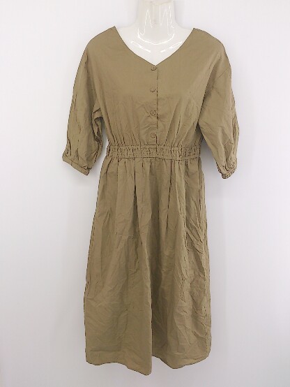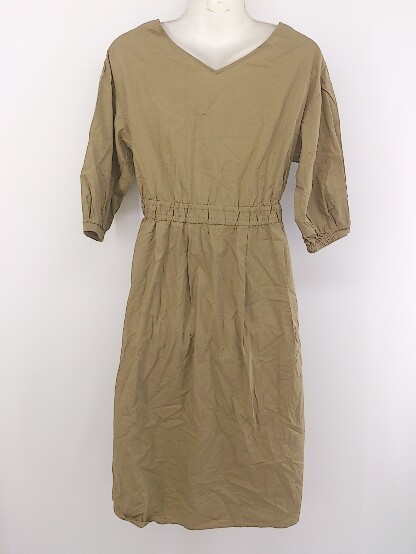 ◇ natural couture ナチュラルクチュール Vネック 七分袖 膝下丈 ワンピース サイズF ベージュ系 レディース P