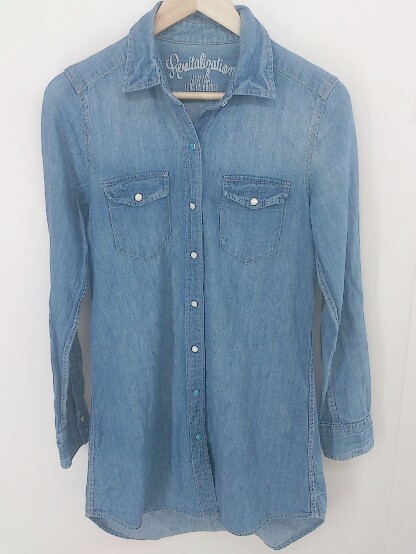 ◇ AZUL by moussy アズールバイマウジー デニム ロング 長袖 シャツ ワンピース サイズM ブルー レディース