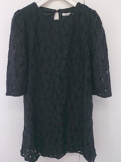 ◇ BLISS POINT ブリスポイント レース 七分袖 ミニ ワンピース サイズL ブラック レディース
