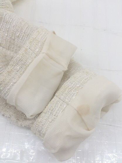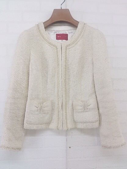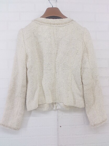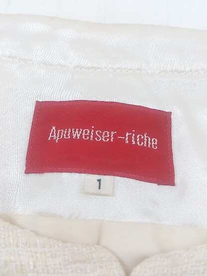 ◇ Apuweiser riche アプワイザー リッシェ ツイード調 長袖 ノーカラー ジャケット サイズ1 アイボリー系 レディース P
