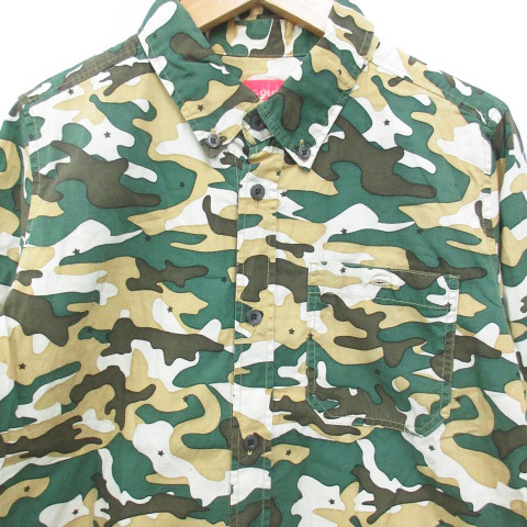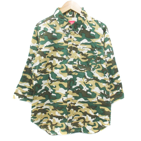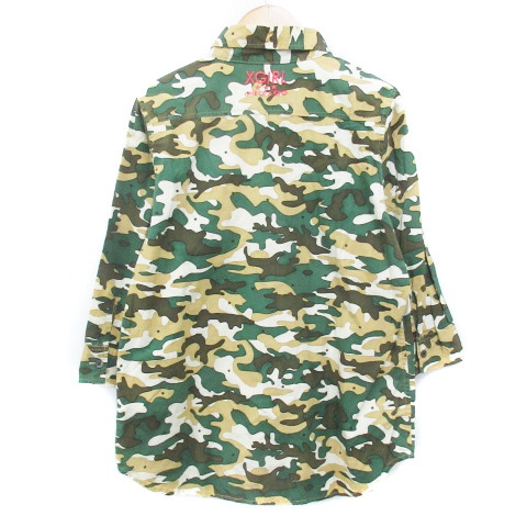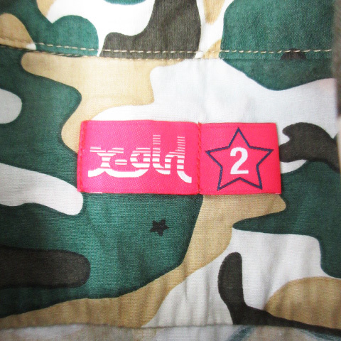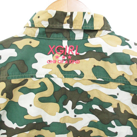 エックスガール カジュアルシャツ 七分袖 ボタンダウン ロゴ 迷彩柄 カモフラ柄 マルチカラー 2 ベージュ 緑 グリーン /FF26 レディース