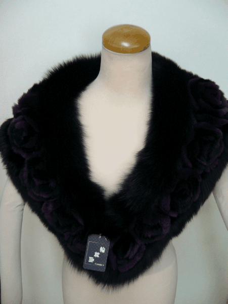 秀匠 ☆ 在庫品 超かわいい FOXショール 黒地に紫 07930