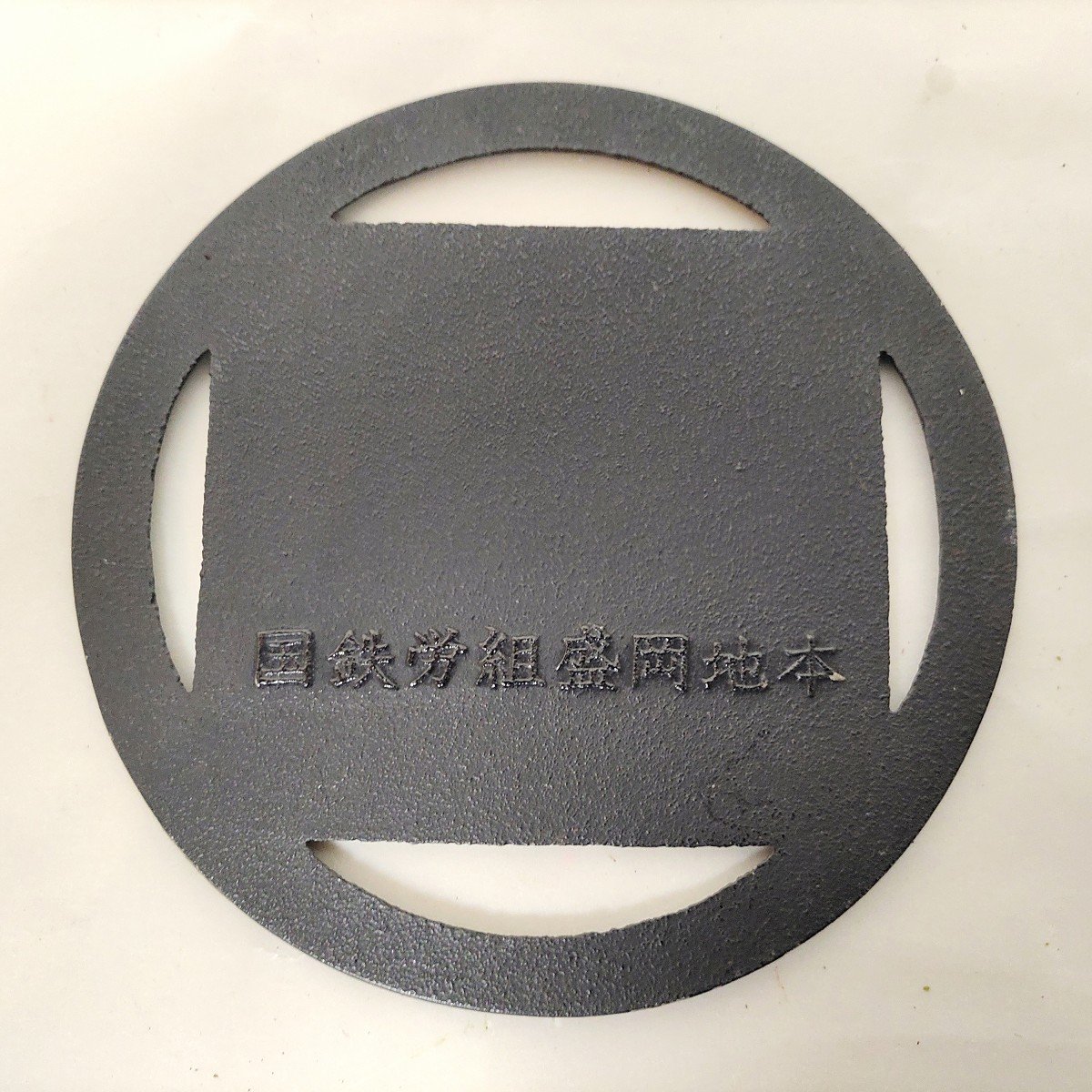 直径:約210㎜、高さ:約40㎜、状態ランク:C キズ、サビ汚れあり。『NRU(国鉄労働組合)』『国鉄労組盛岡地本』と刻印。その他状態は画像をご確認ください。