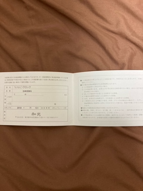 WAKO クロック 保証書 和光 時計 ワコーです。