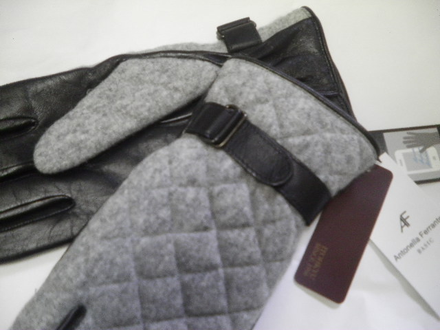 商品 情報 | ☆新品 ☆ロゴマーク入りです!!(モニター環境により色が写真と少し異なる場合があります) ☆カラー グレー&ブラック系 甲部 グレーはキルティングになっています ☆素材 掌部 ラムレザー 甲部 ウール100% ☆裏地 ウール Made in Philippines ☆平置きサイズ *手首~中指の先 約 26、5cm *手首の幅 約 10~10、5m *中指の長さ 約 8、9cm 手首の幅が小さめです ※参考程度に (測る場所により多少の誤差が生じます) ☆表記サイズ М 23cm (手囲いサイズ М 23~24cm L 25~26cm LL 27cm~)☆ブランド ANTONELLA FERRANTE アントネラ フェランテ☆ |
