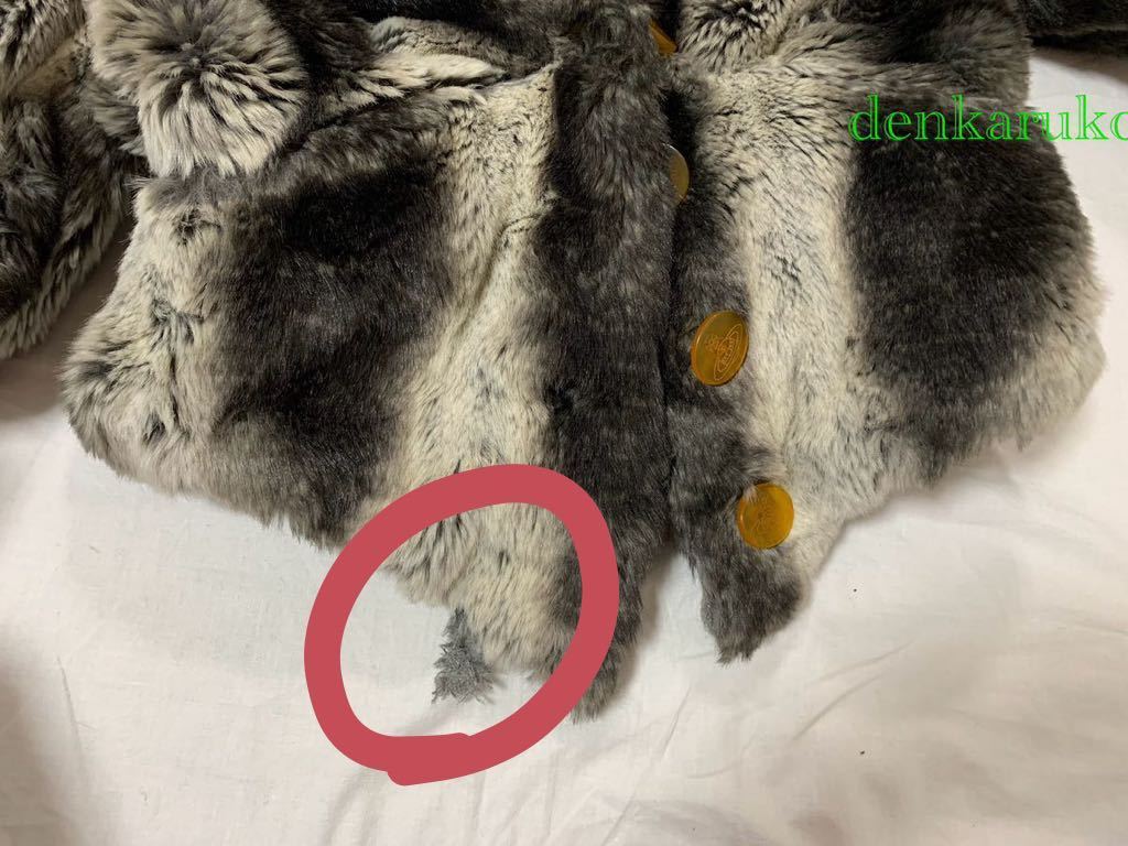 ※ ファーの具合で表からはわからないのですが、内側の前右裾の生地が破け、穴があります。 破けている処、引っ張りだしたり、 加減によって表に出るみたいです。