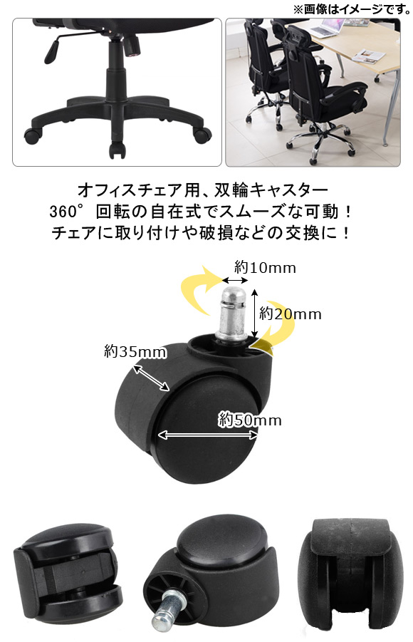 AP オフィスチェア用 双輪キャスター 50mm シャフトタイプ プラスチックホイール 自在式 AP-UJ0053-P-50-T1