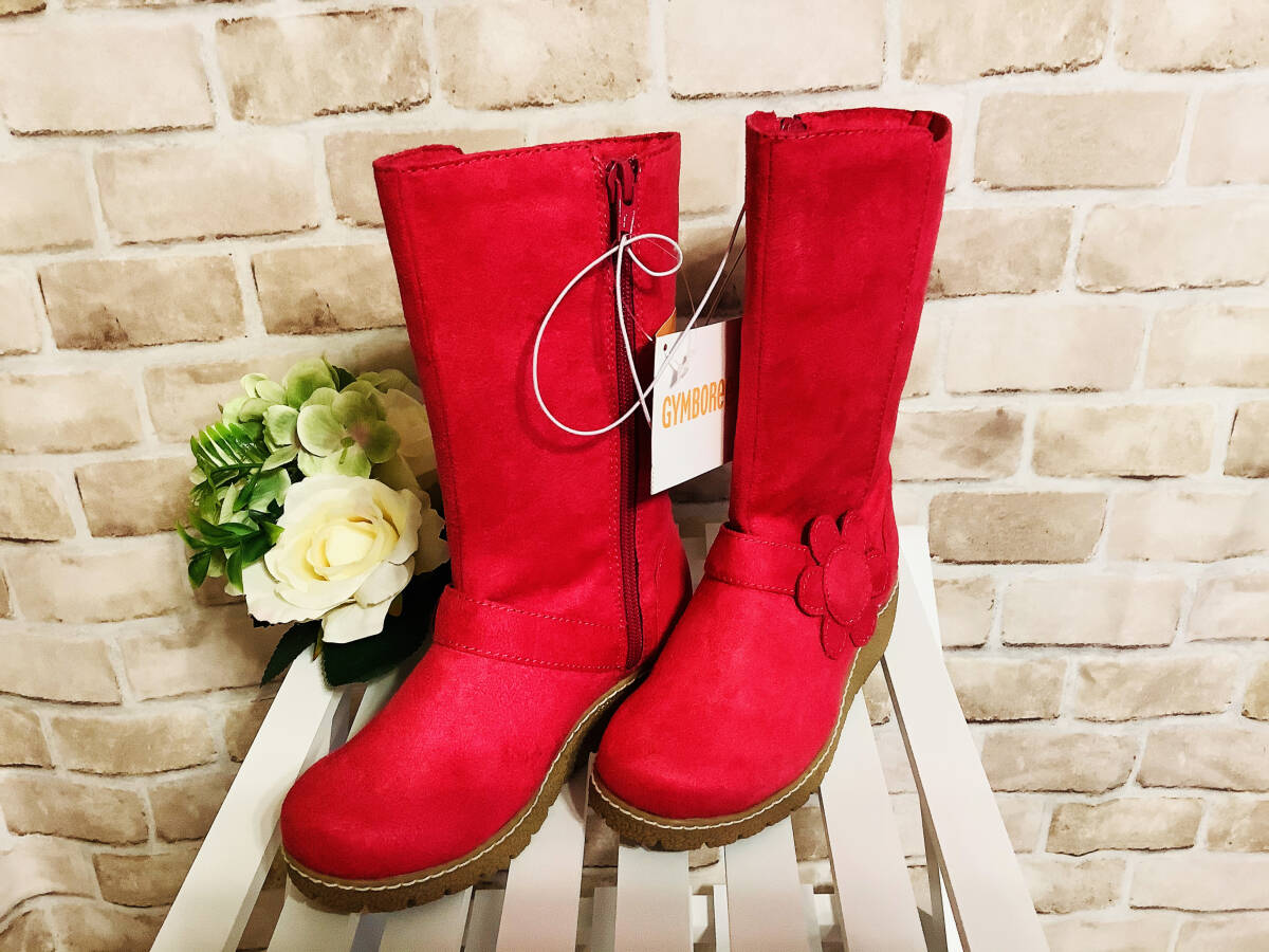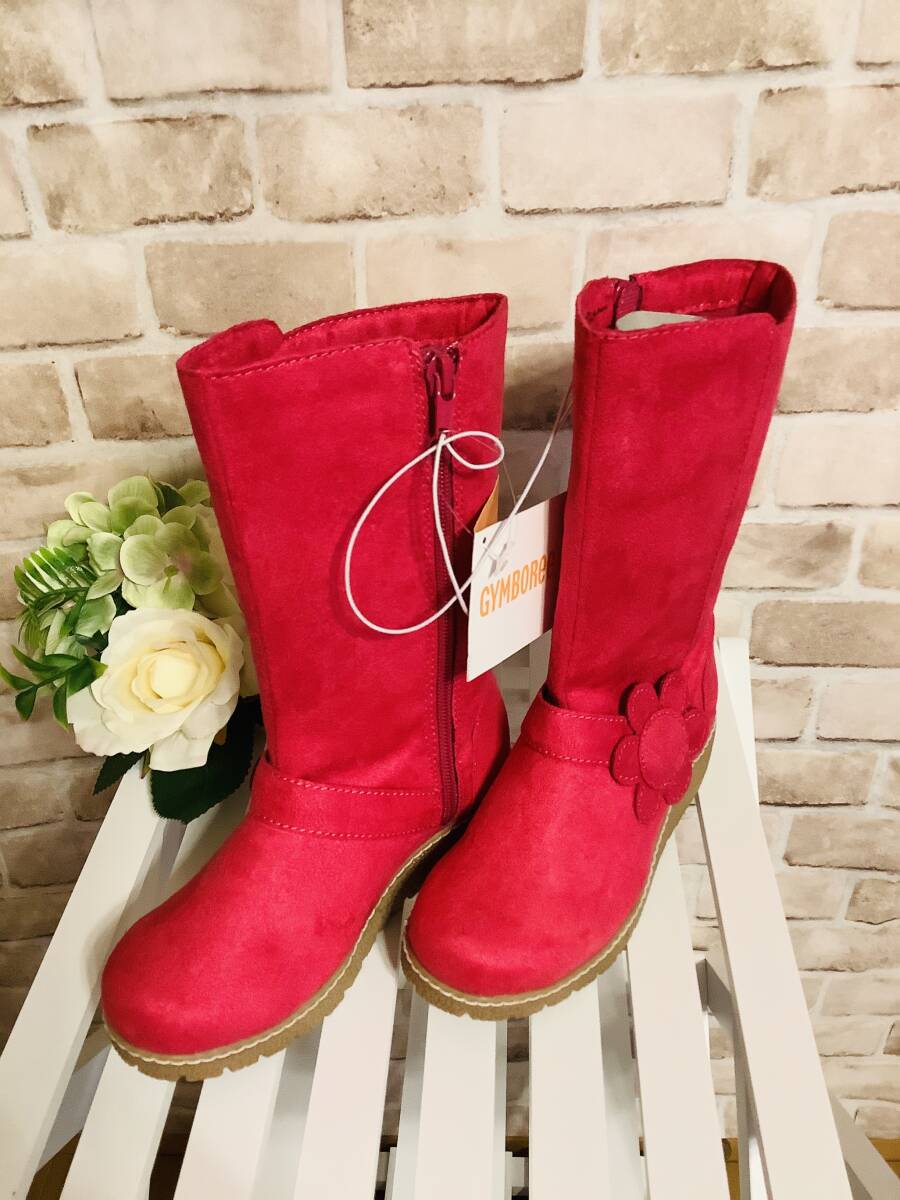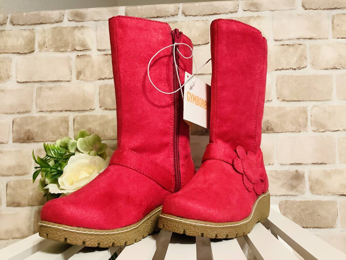 Sho-406【新品】Gymboree/ブーツ/19.0cm/US12/ビビットピンク/お花/スウェード調/ベルト/ジンボリー/インポート/子供用/女の子/送料無料